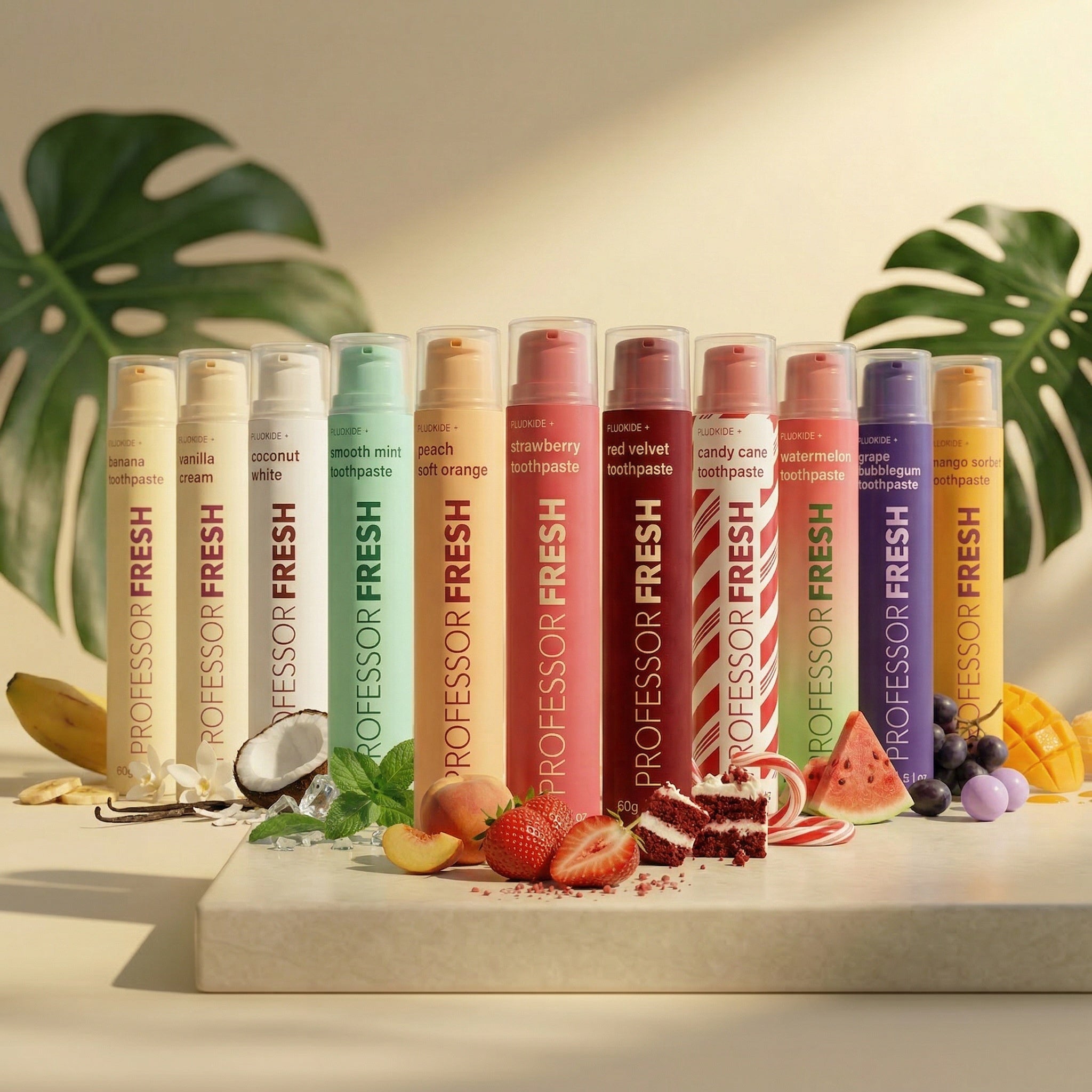 Professor Fresh delivers the same clinical-grade ingredients found in leading dental brands — cavity protection, enamel strengthening, plaque defense, and gum support — inside 11 flavors you'll actually look forward to using. This isn't novelty toothpaste. It's real oral care that happens to taste incredible.